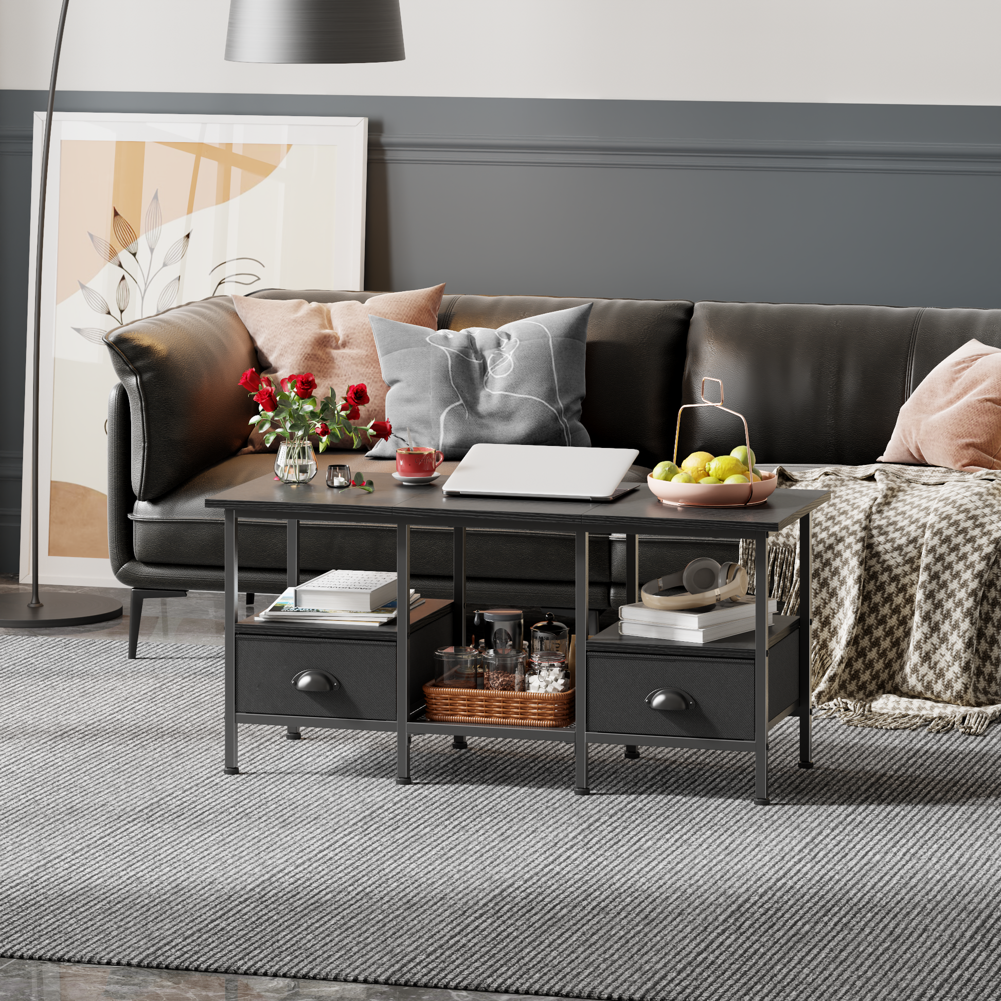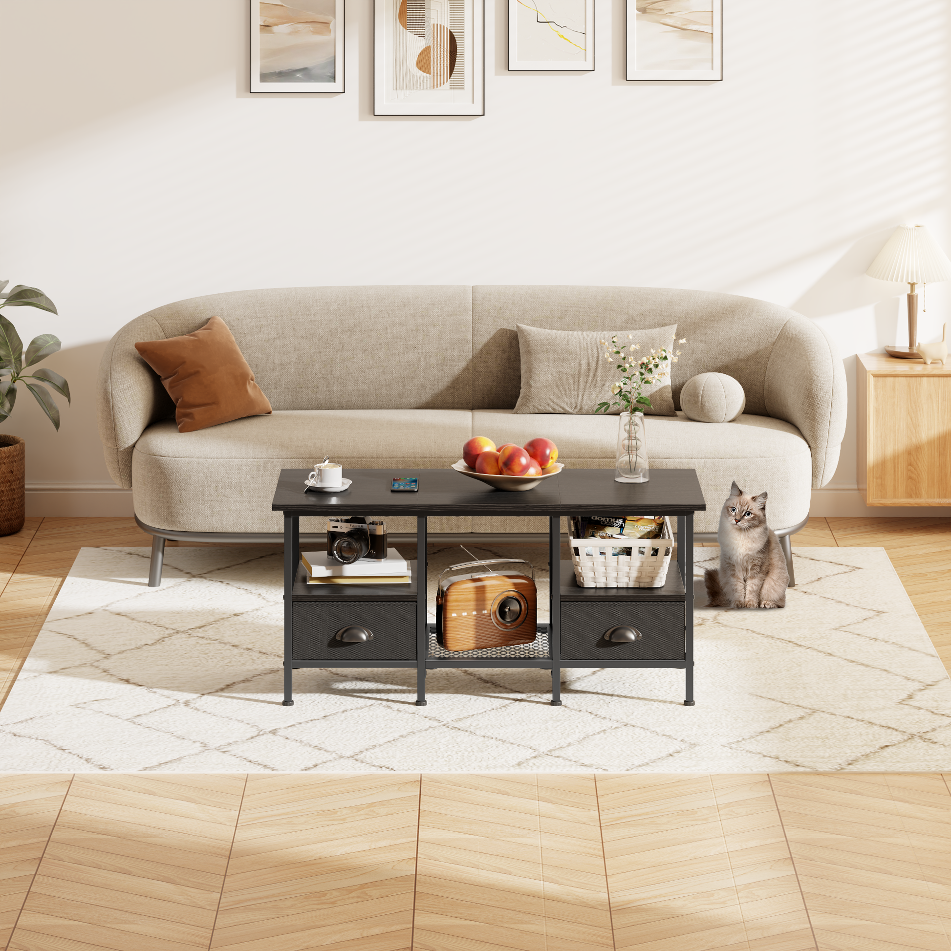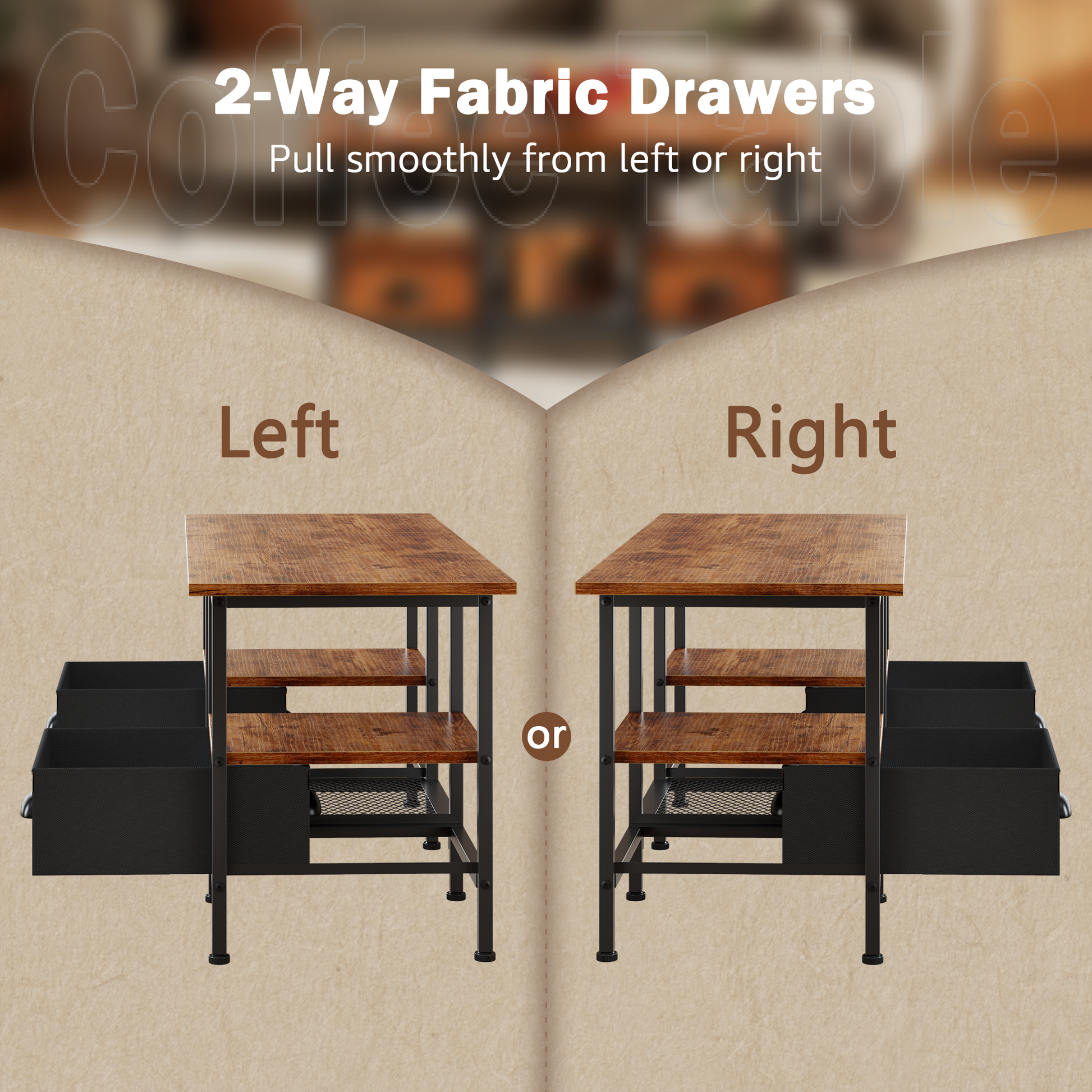 - Spacious Storage Space: 35in coffee table features 2 fabric drawers which hold snacks and books, enlarge your space and keep all your things and organized. The innovative dual-access design lets you open drawers from either side. 3 open storage shelf beneath the coffee table top is designed to store your items like magazines, laptop, toy, etc.