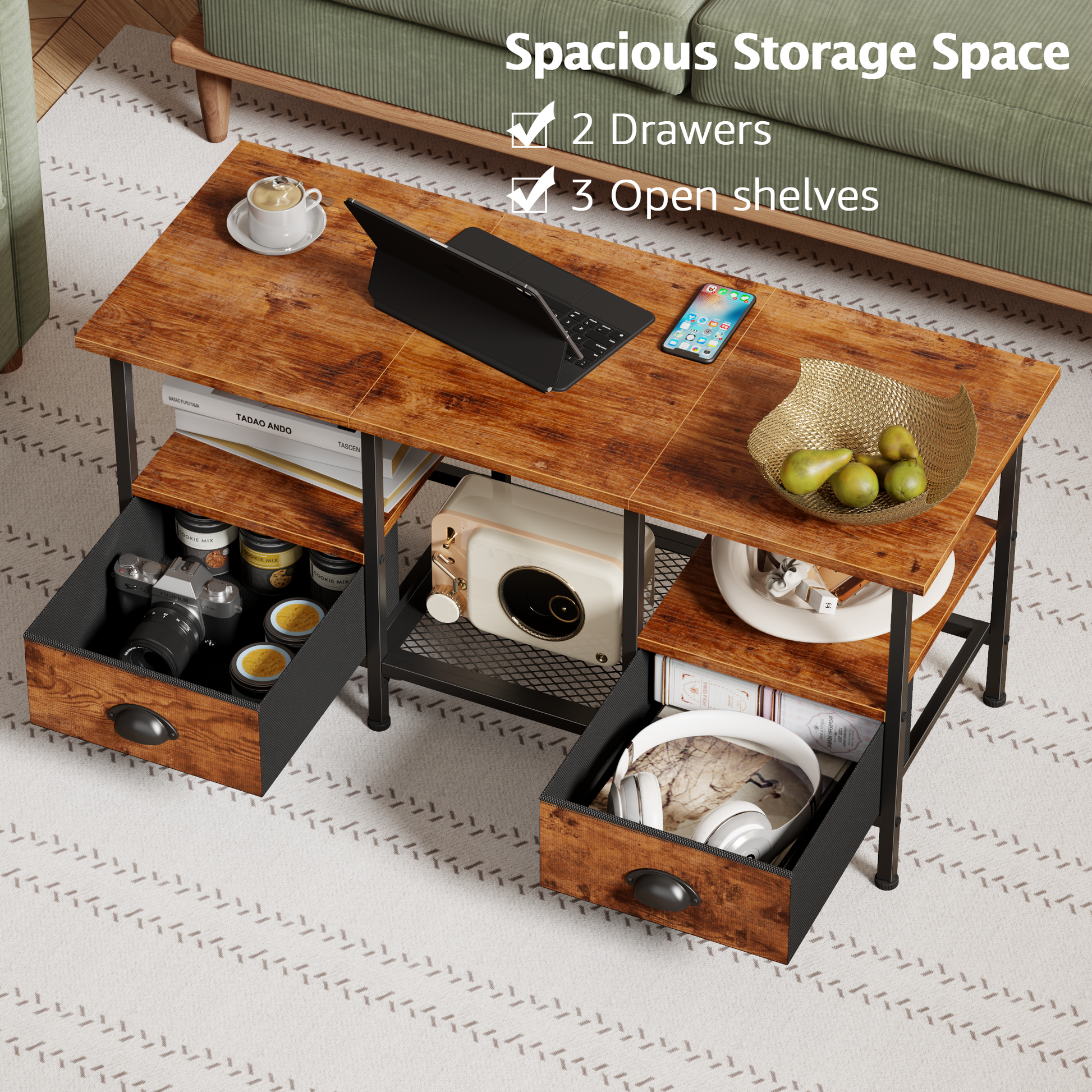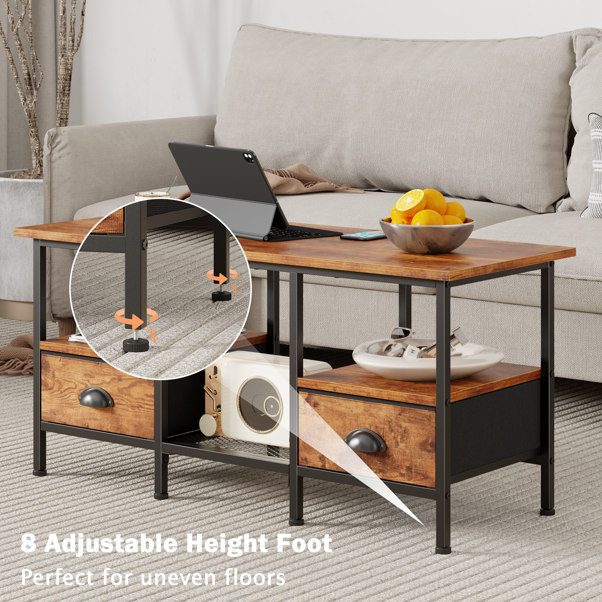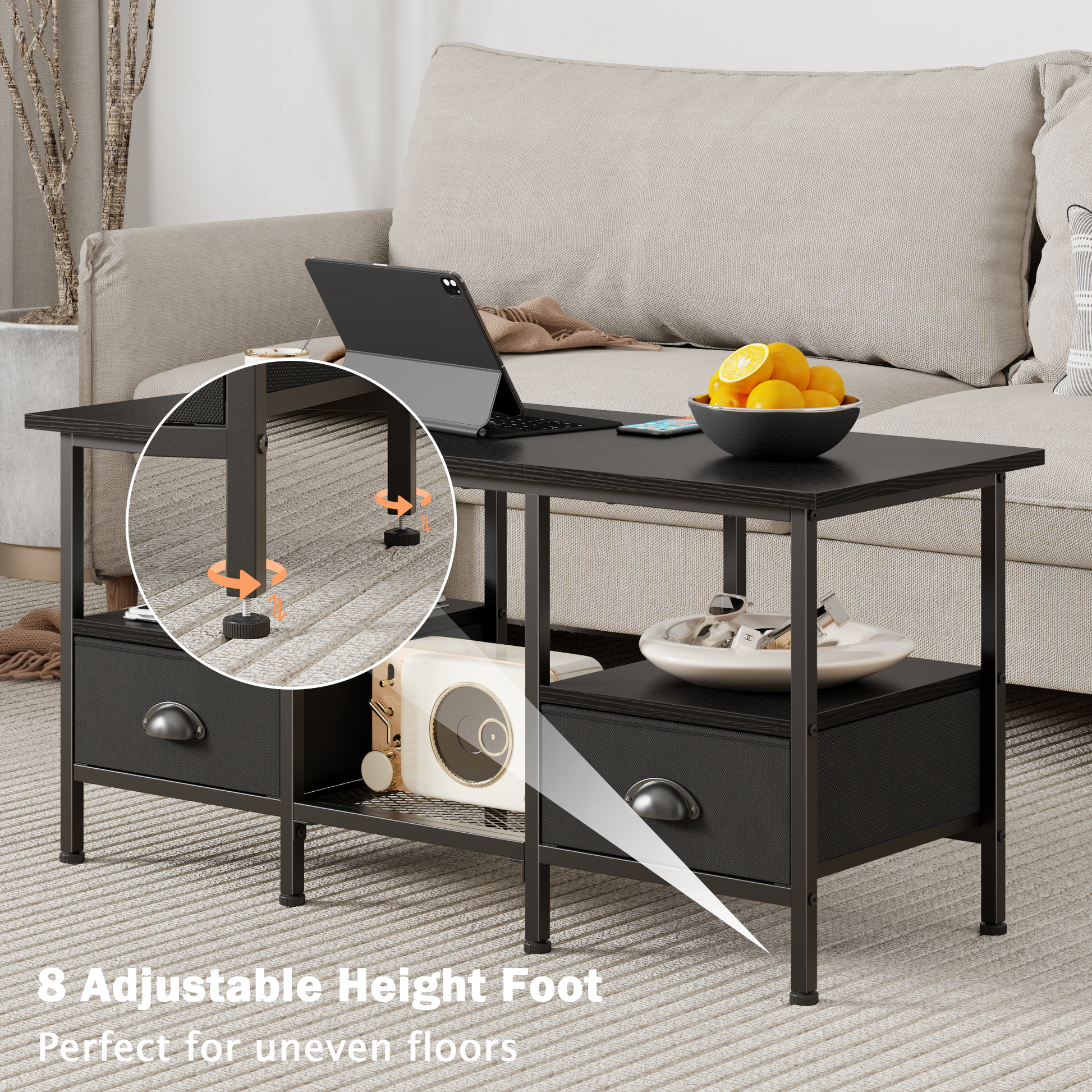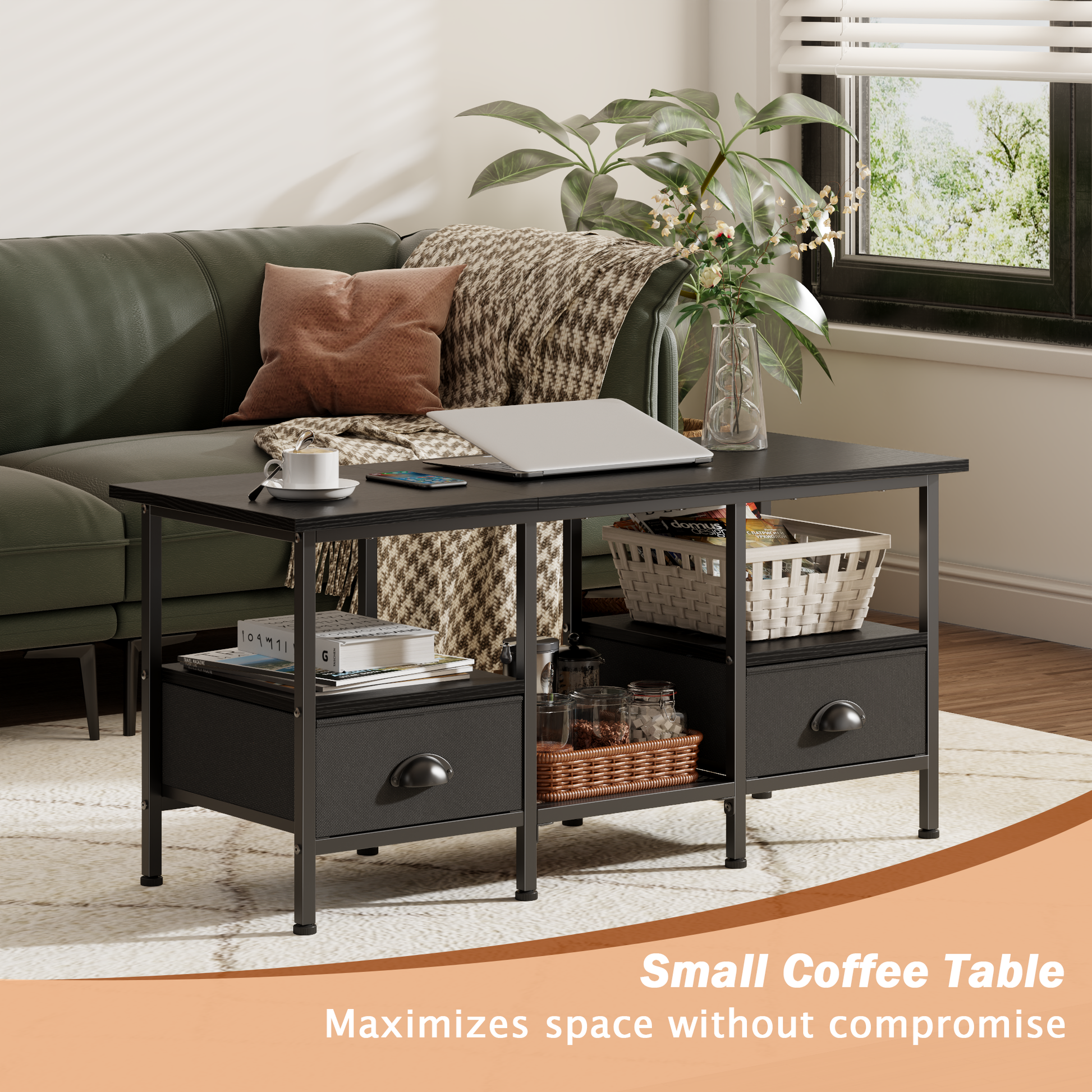 - Spacious Storage Space: 35in coffee table features 2 fabric drawers which hold snacks and books, enlarge your space and keep all your things and organized. The innovative dual-access design lets you open drawers from either side. 3 open storage shelf beneath the coffee table top is designed to store your items like magazines, laptop, toy, etc.