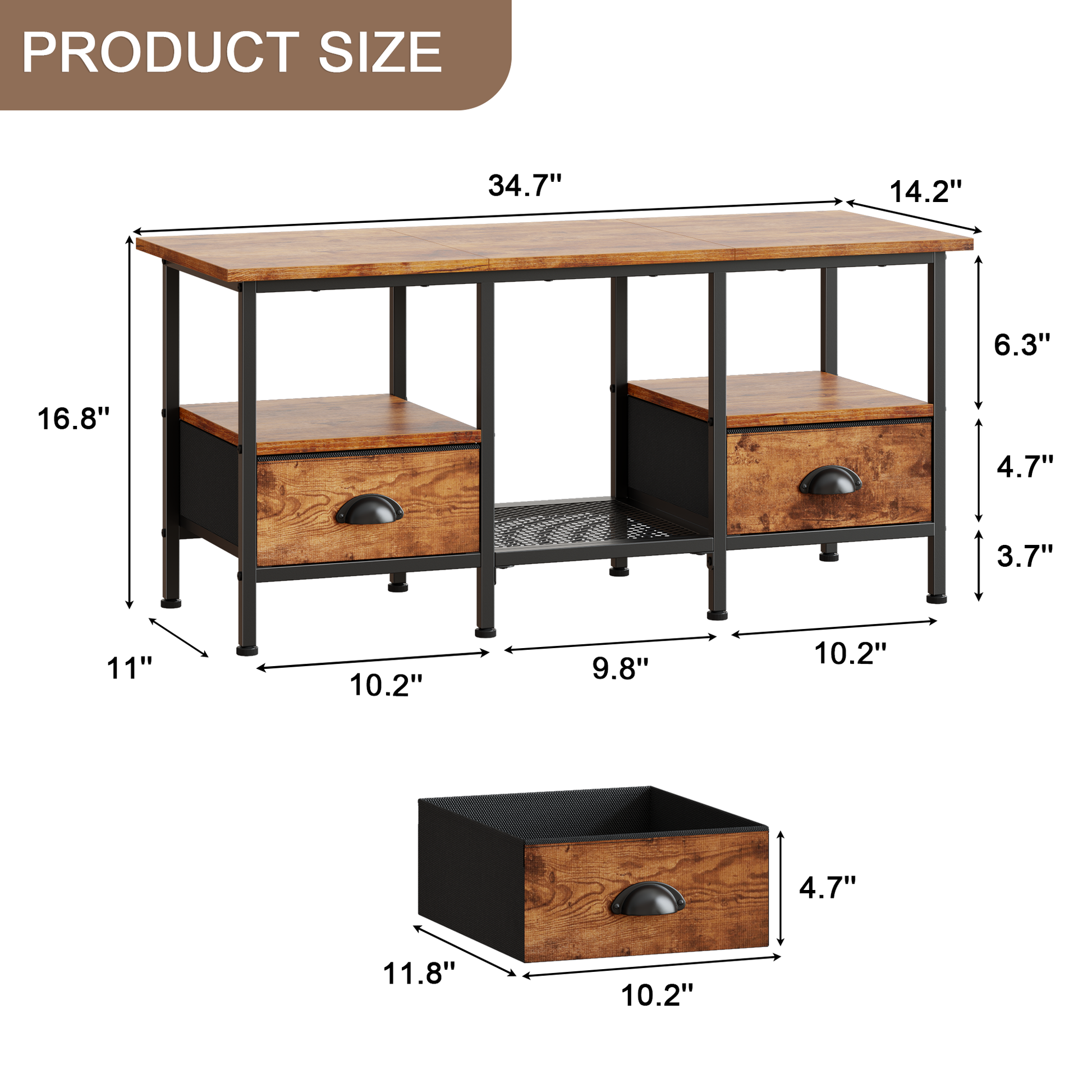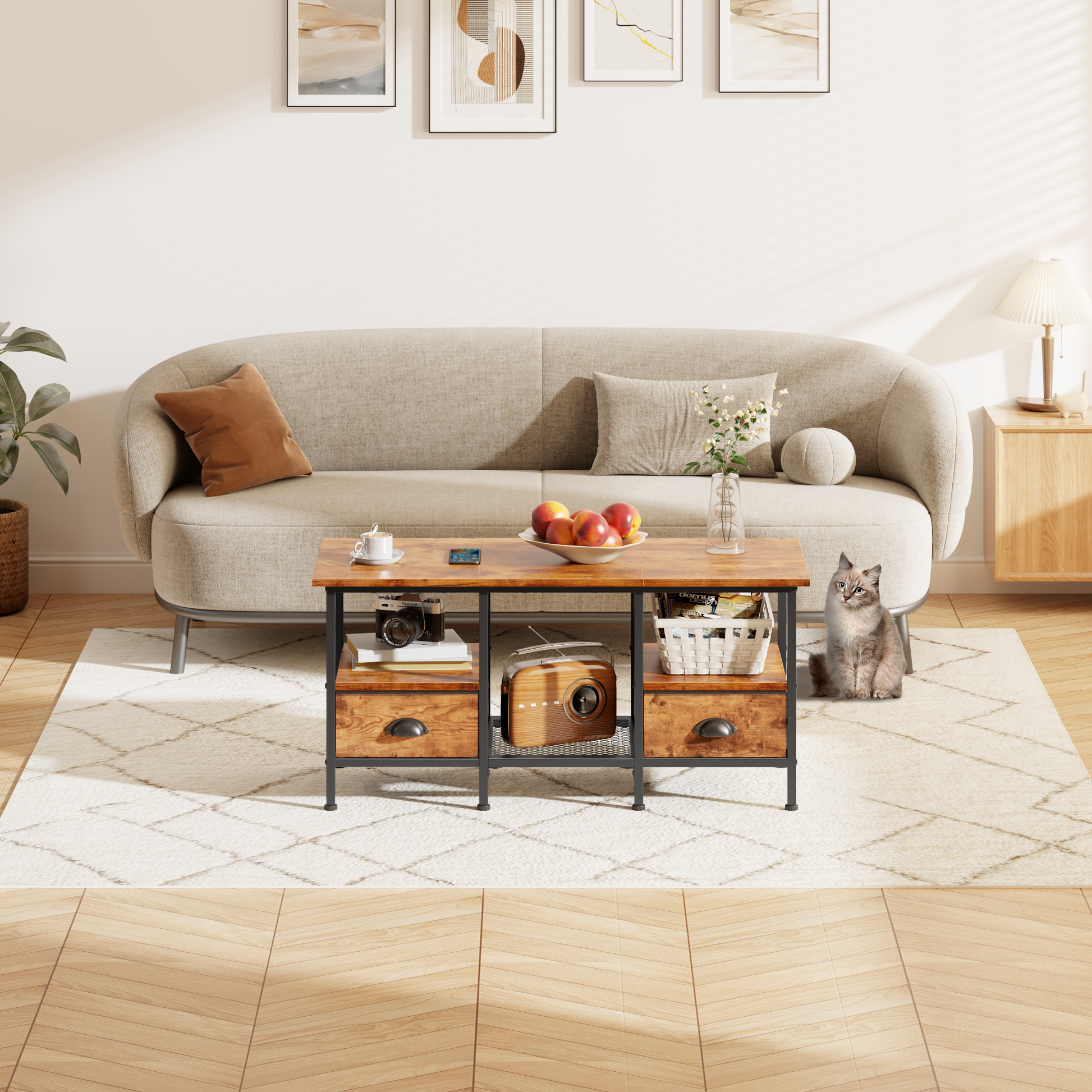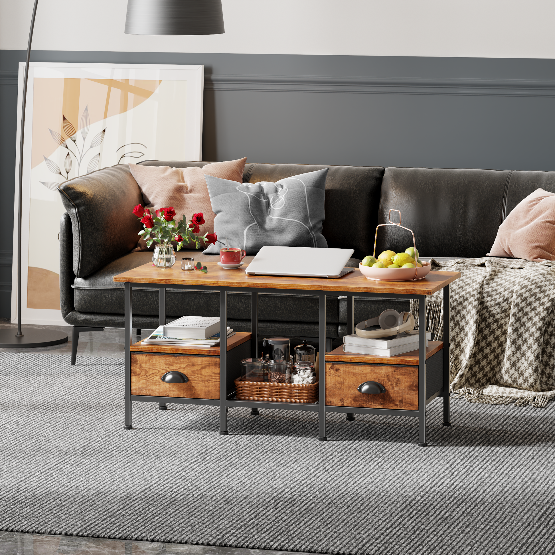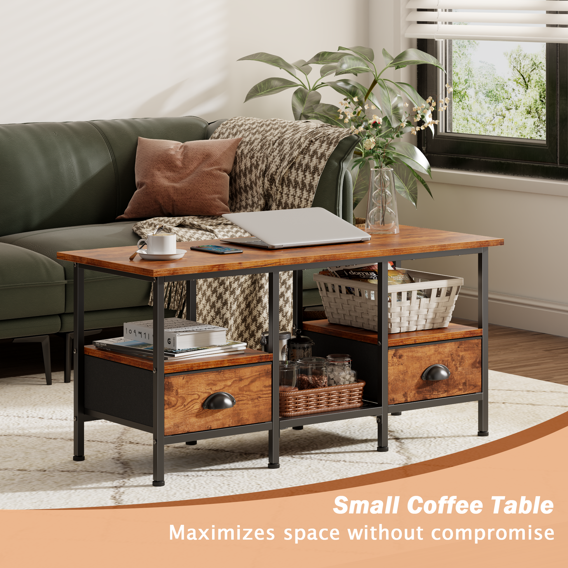 Furologee 35" Coffee Table with Storage Drawers, Rustic Industrial Center Table with 2-Tier Shelf for Small Living Rooms