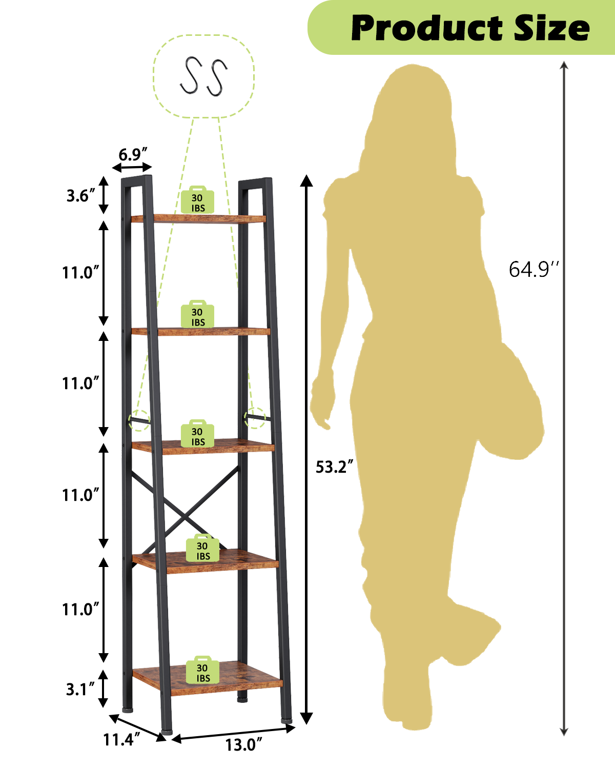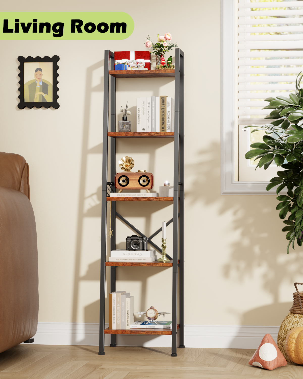 - Stable Structure: This narrow ladder bookcase features a sturdy frame design with a X-backboard, 4 adjustable feet and an anti-tip kit for added durability and stability