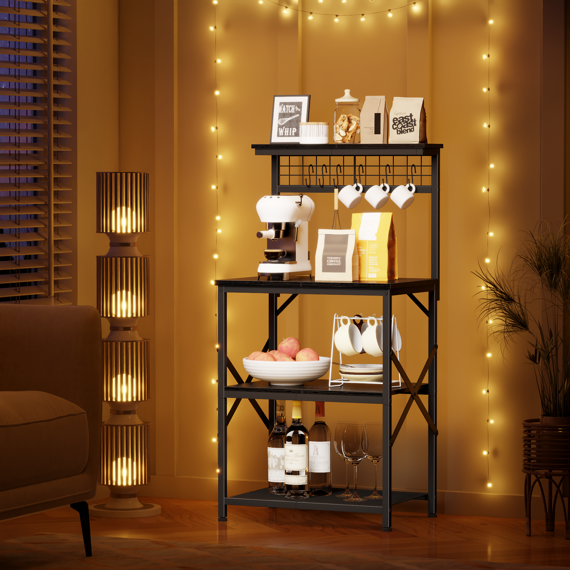 - [Baker's Rack with Power Outlets] The kitchen storage rack with 2 power outlets and an air switch button, no need to move your coffee bar station, microwave oven or bread maker to get charged to keep your kitchen tidy and organized.