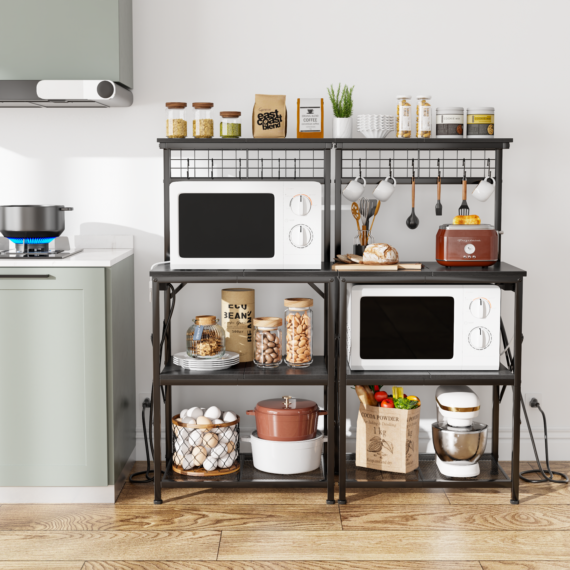- [Baker's Rack with Power Outlets] The kitchen storage rack with 2 power outlets and an air switch button, no need to move your coffee bar station, microwave oven or bread maker to get charged to keep your kitchen tidy and organized.