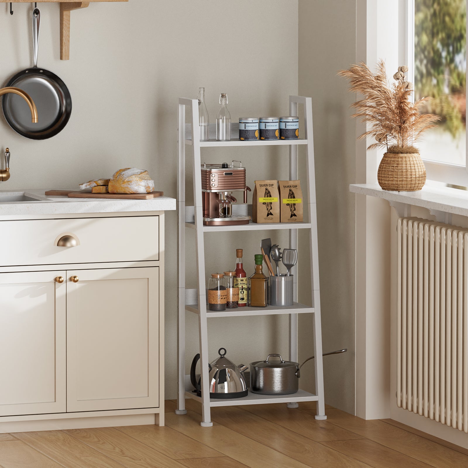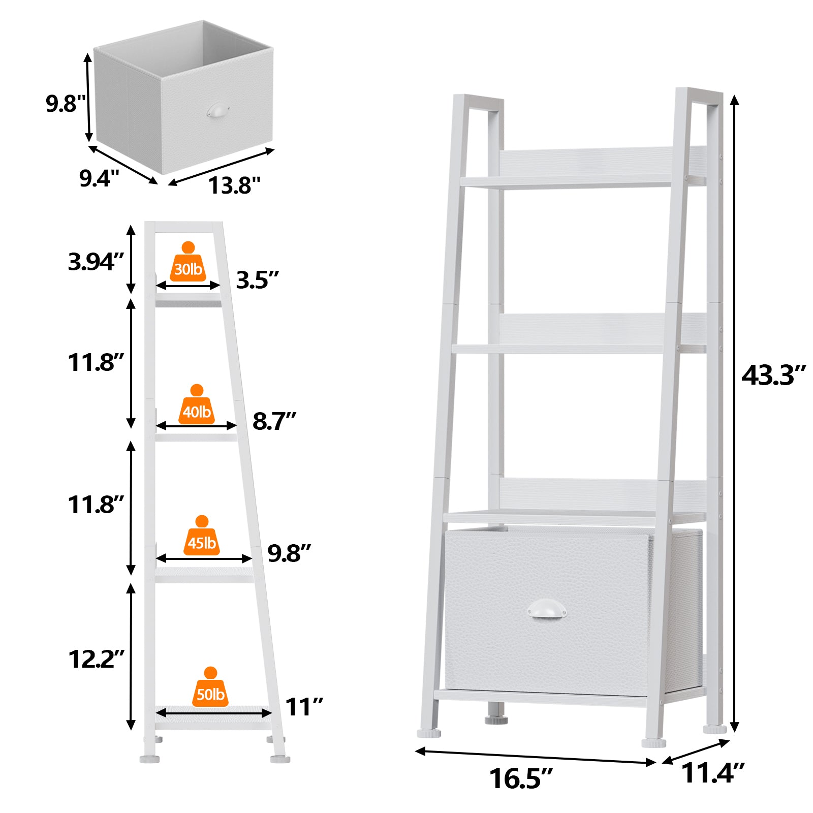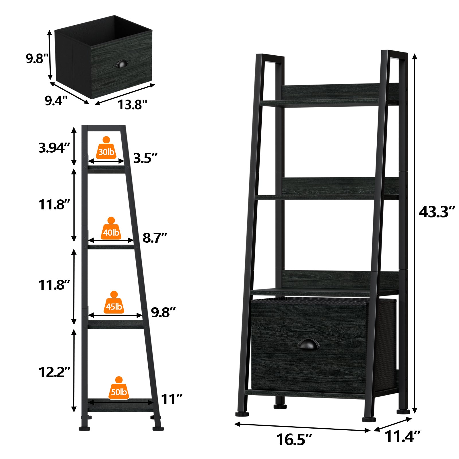 - Multiple Choices & Industrial Style: Available in 4 and 5-tier sizes, with color options in rustic brown, black oak, and white. The design combines practicality with a vintage look, making it a stylish addition to any decor.