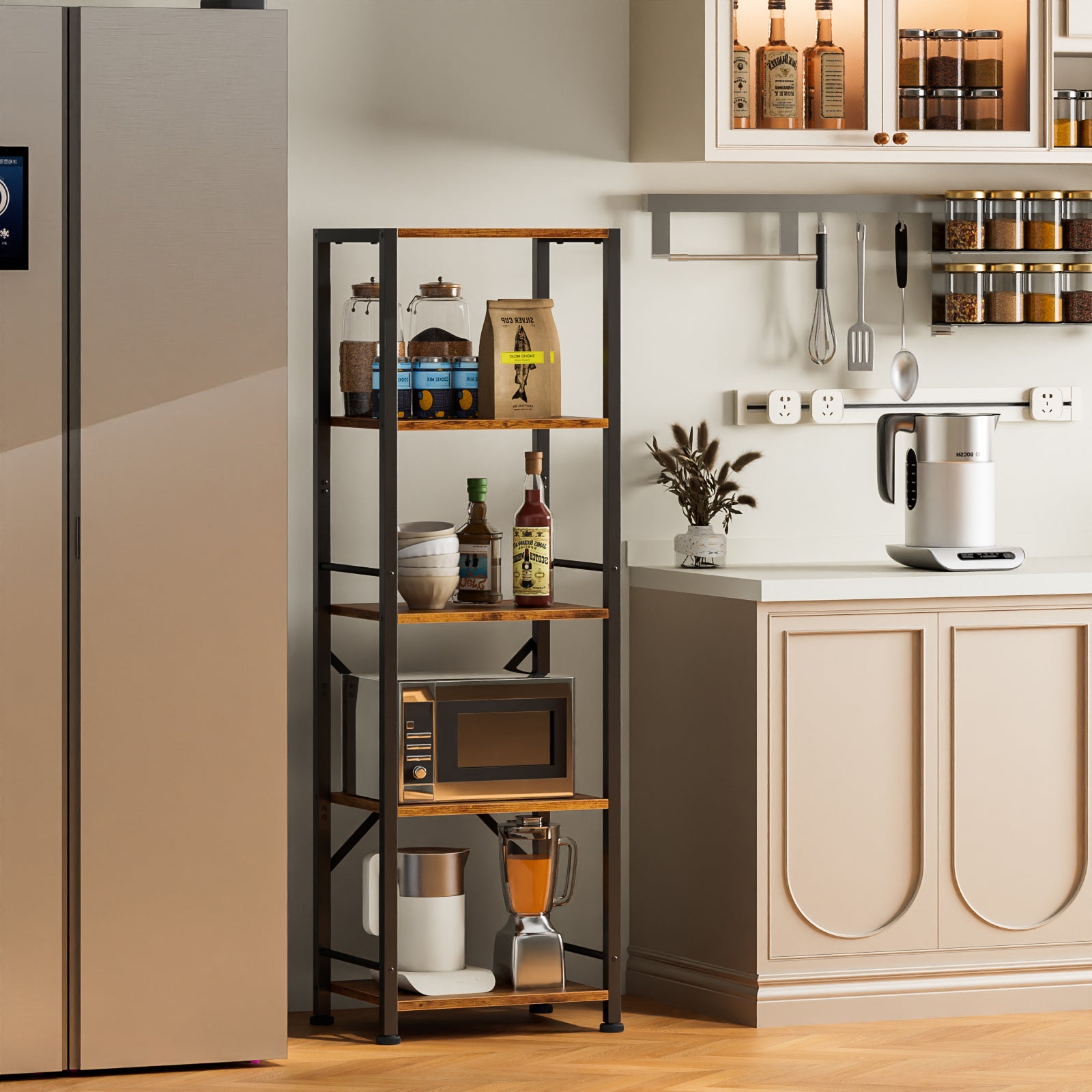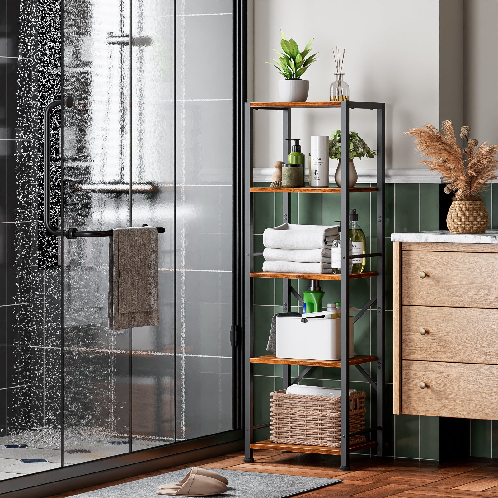 Furologee 5 Tier Tall Bookshelf, Rustic Narrow Bookcase