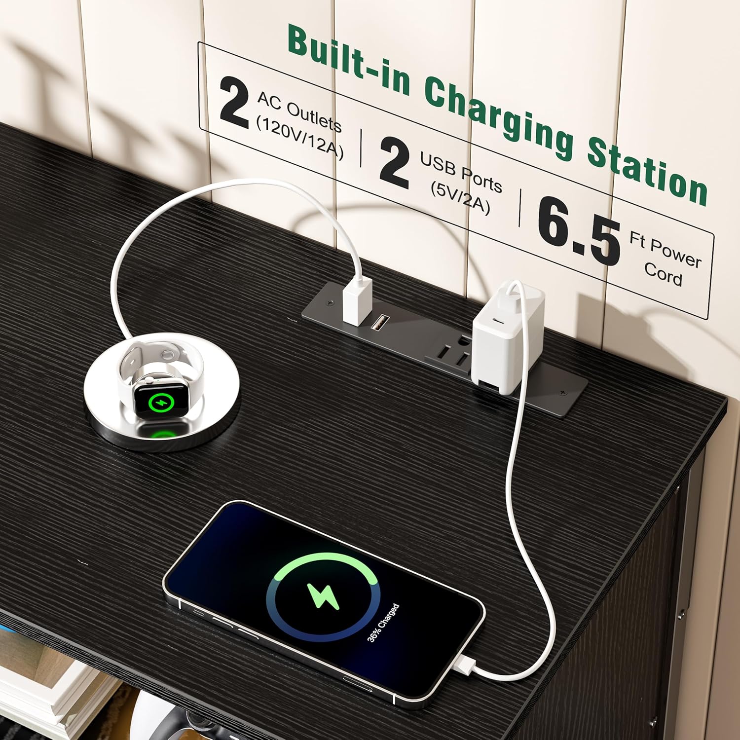 - TV Stand with Charging Station: The 55 Inchs TV entertainment center is equipped with a power strip with 2 Power outlets and 2 USB charging ports. These multiple charging options are always helpful for the use of your electronic devices, ranging from TV boxes, game consoles, media to speakers