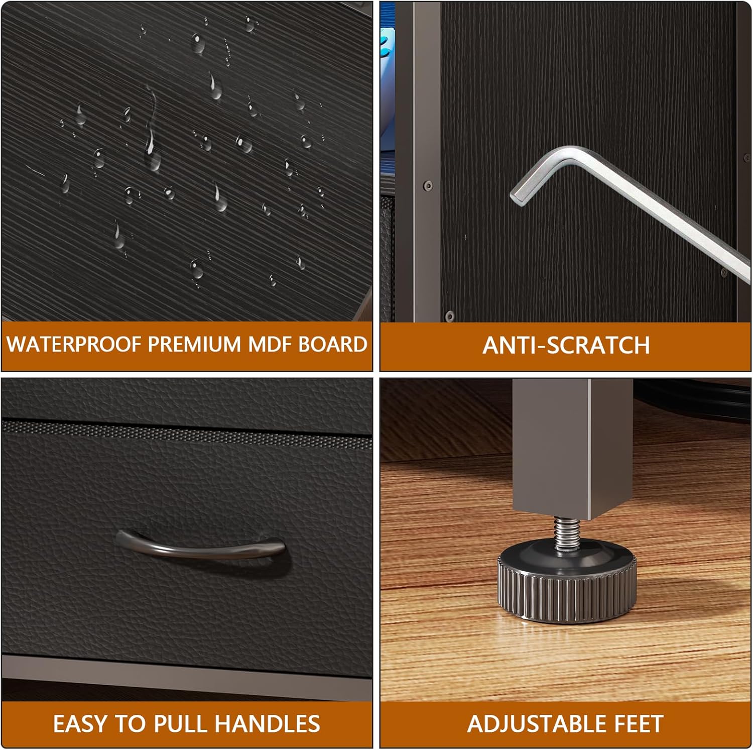 - RGB LED Lights: The TV stand included multi-color LED light strip can be easily controlled by the remote control, allowing you to enjoy various RGB colors and lighting modes. Different styles and lighting of the tv dresser can be matched with your living room, bedroom, office, study, entryway and other scenes