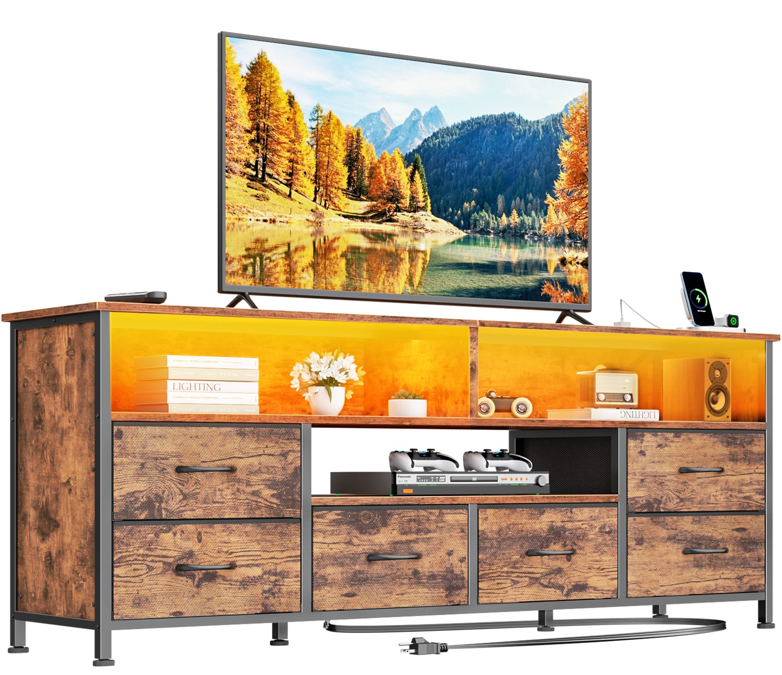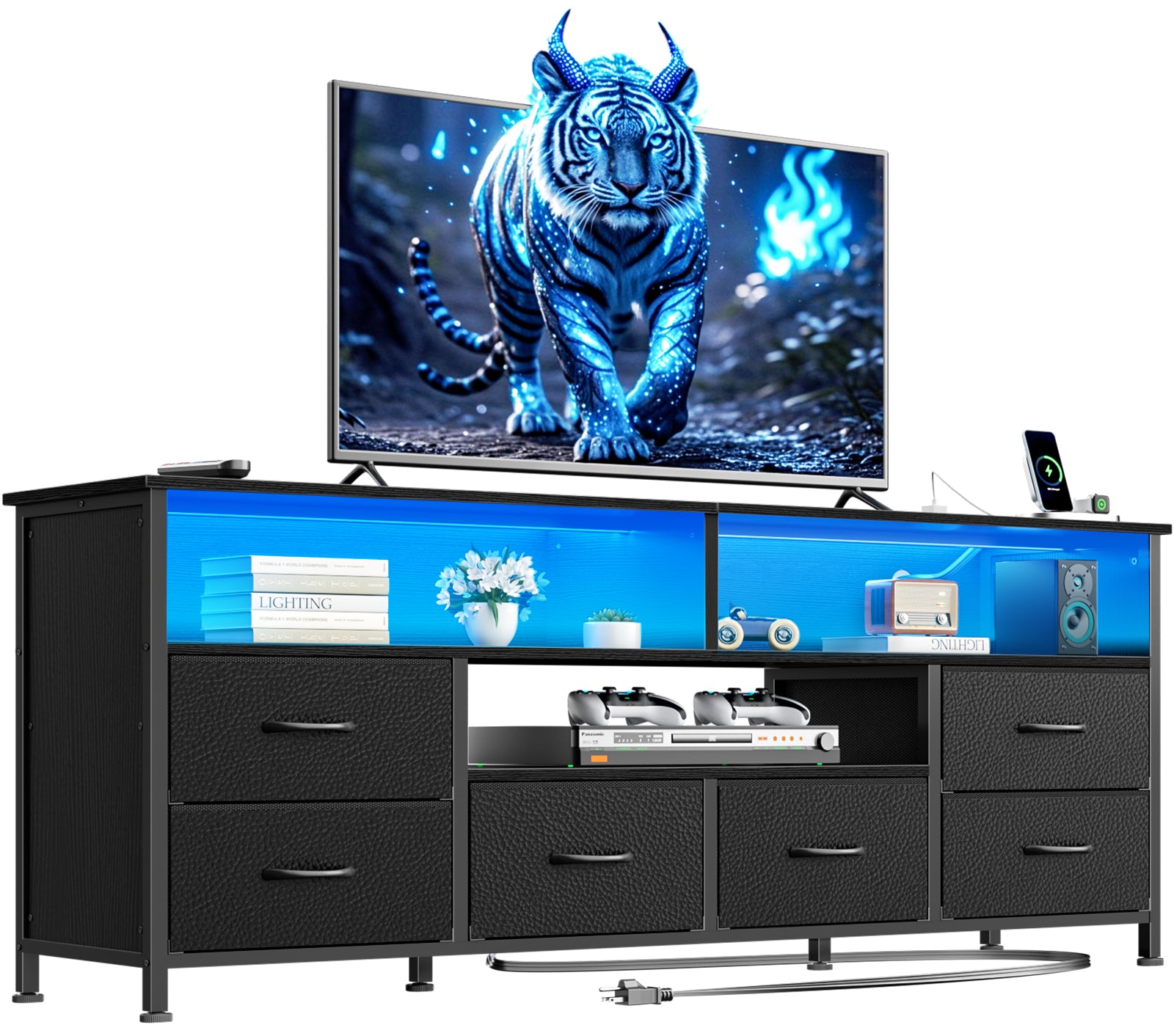 Furologee 55" LED TV Stand for Bedroom with Power Outlets, Entertainment Center with 6 Fabric Drawers for 50/55/60 inch TVs