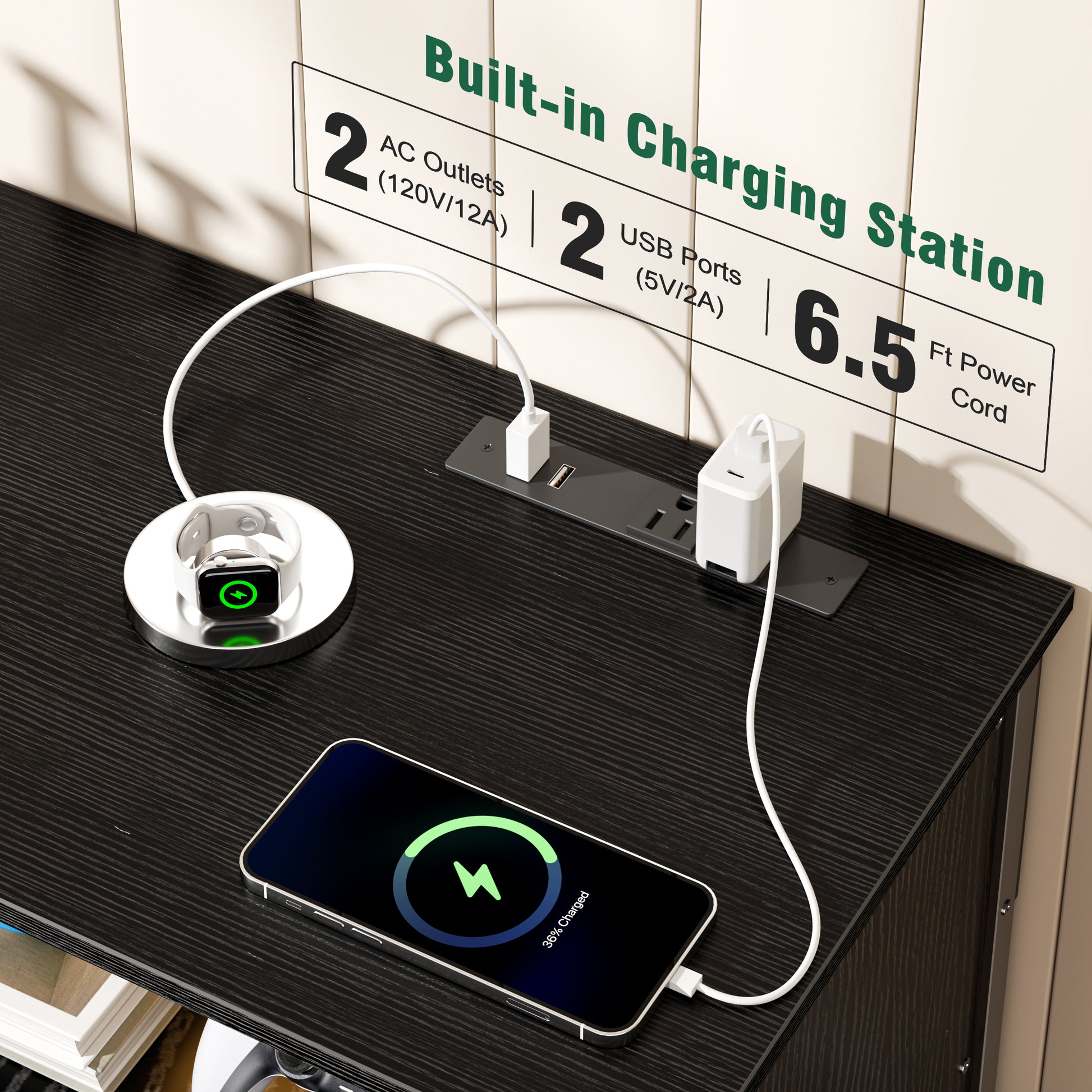 - TV Stand with Charging Station: This TV entertainment center is equipped with a power strip with 2 Power outlets and 2 USB charging ports. These multiple charging options are always helpful for the use of your electronic devices, ranging from TV boxes, game consoles, media to speakers