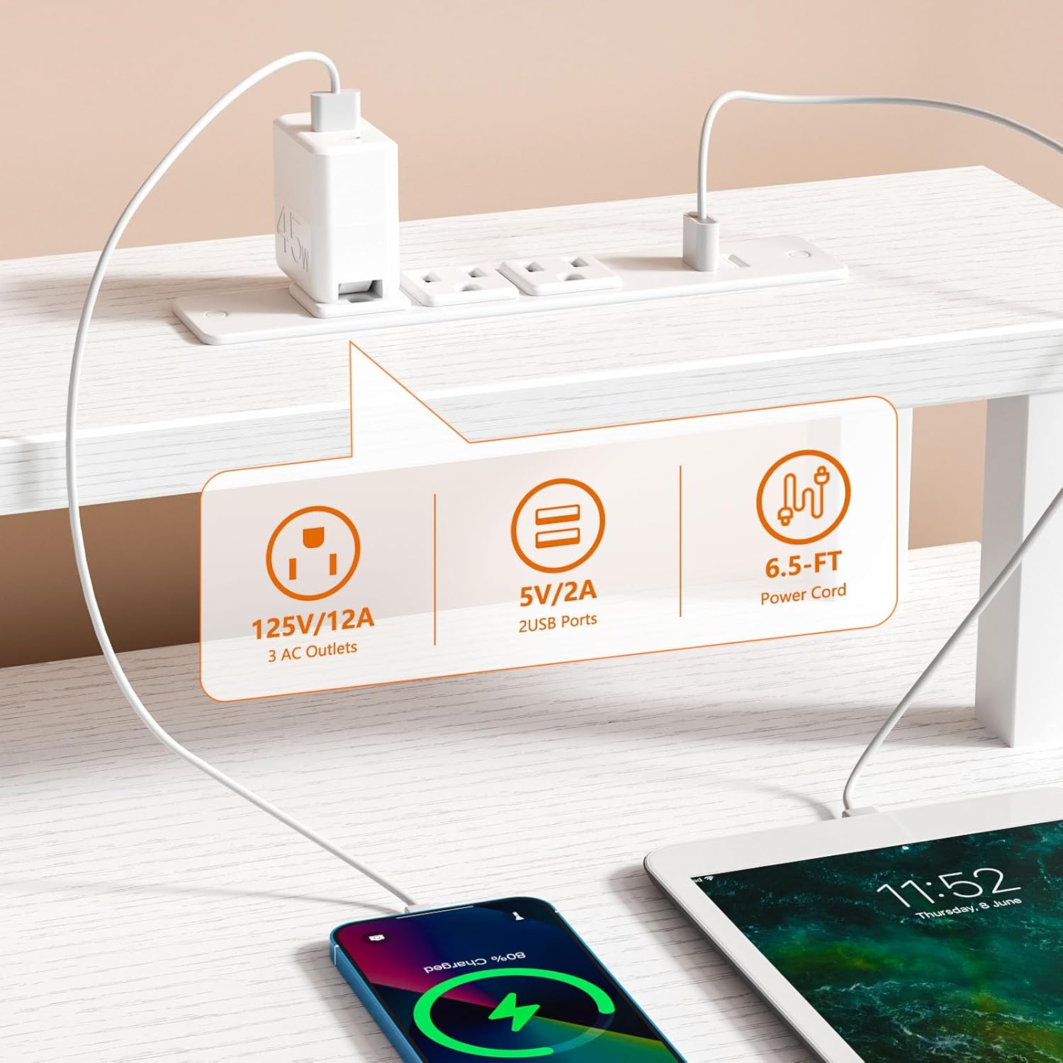 - Computer Desk with Charging Station: The computer desk includes a built-in 3 power outlets and 2 USB charging ports for your phone, bluetooth, headset, tablet, power bank, gaming gear with fast charging, which provides a great convenience to your life when you are working or playing games.