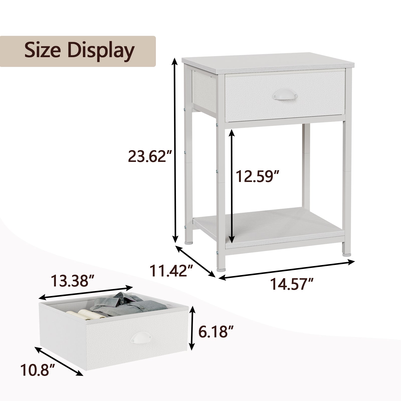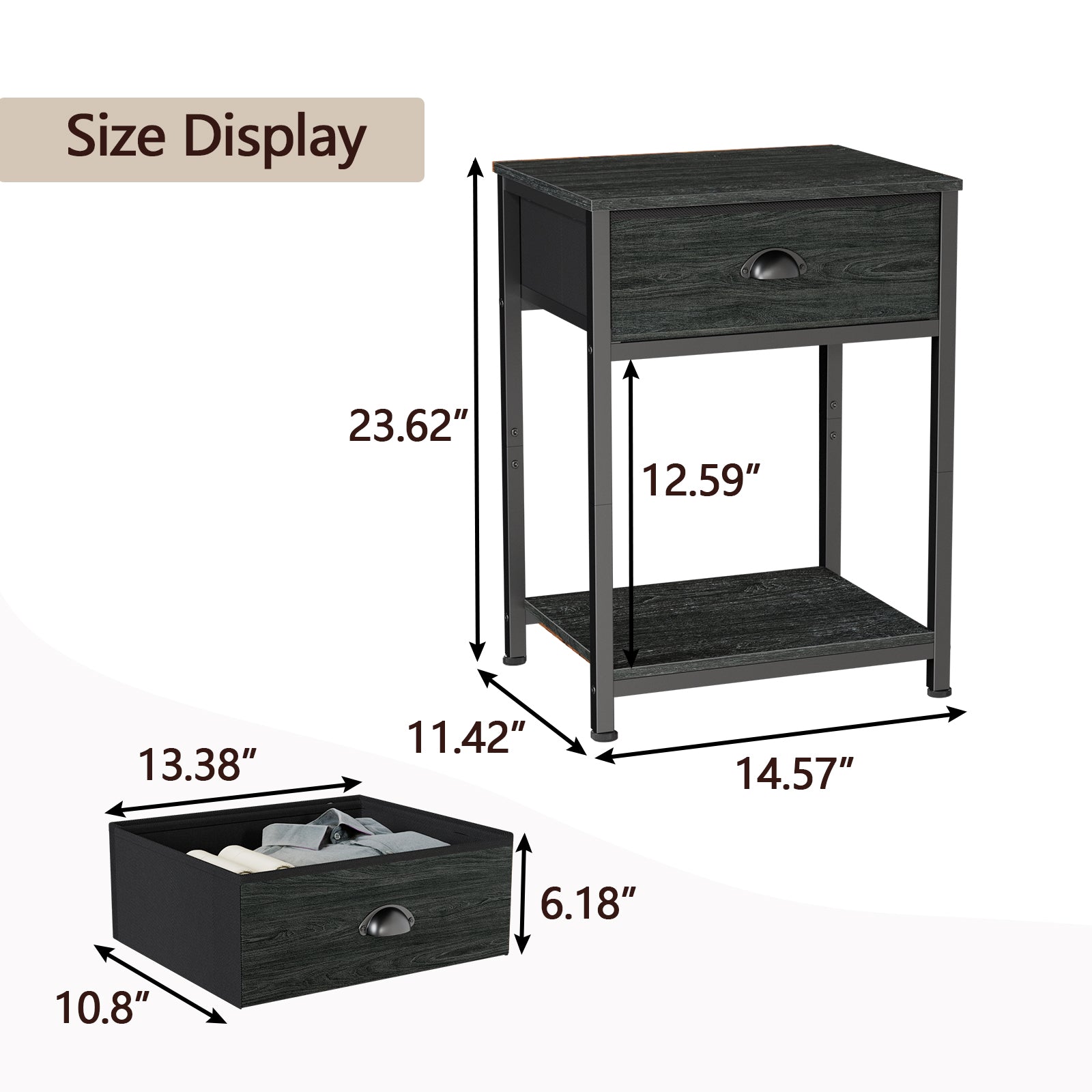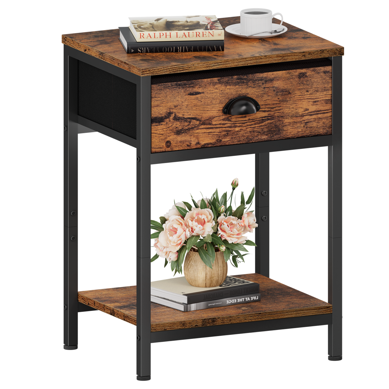 Upgraded Fabric Drawer: The metal end table features easy-pull arch handles and storage drawers made of high-quality non-woven fabric that is lightweight, breathable and prevent dust. The fabric drawer front is veneered with engineered wood in a rustic look.