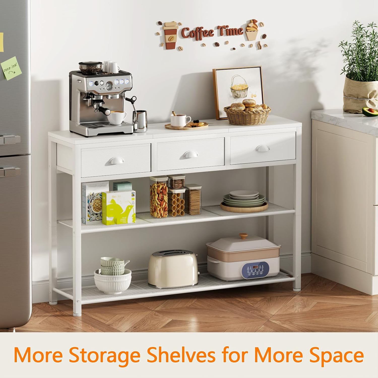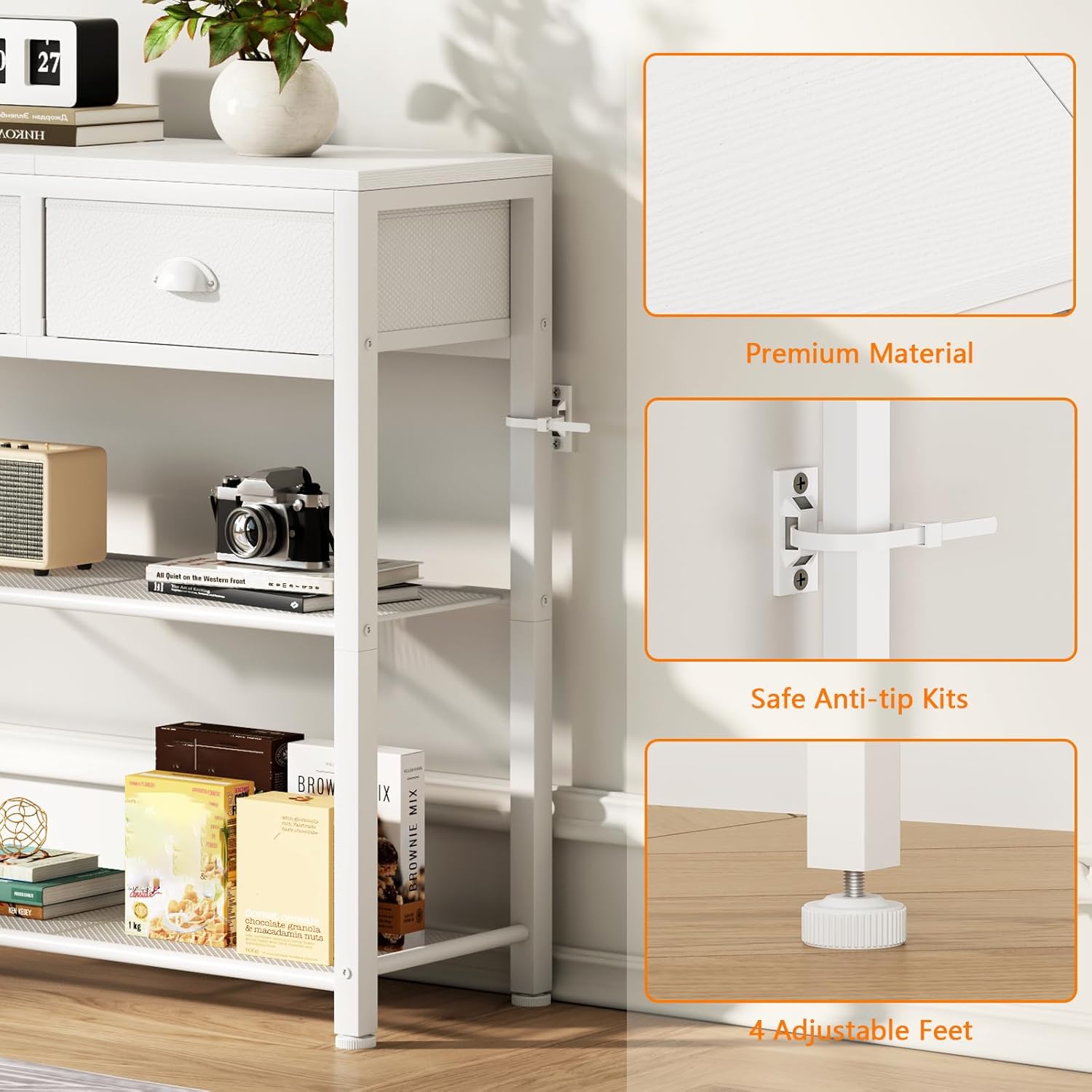 - Upgraded Fabric Drawers: The console table for entryway features easy-pull arch handles and 2 storage drawers made of high quality non-woven fabric that is lightweight, breathable, dustproof and provides ample storage space to keep your essentials organized and within reach.