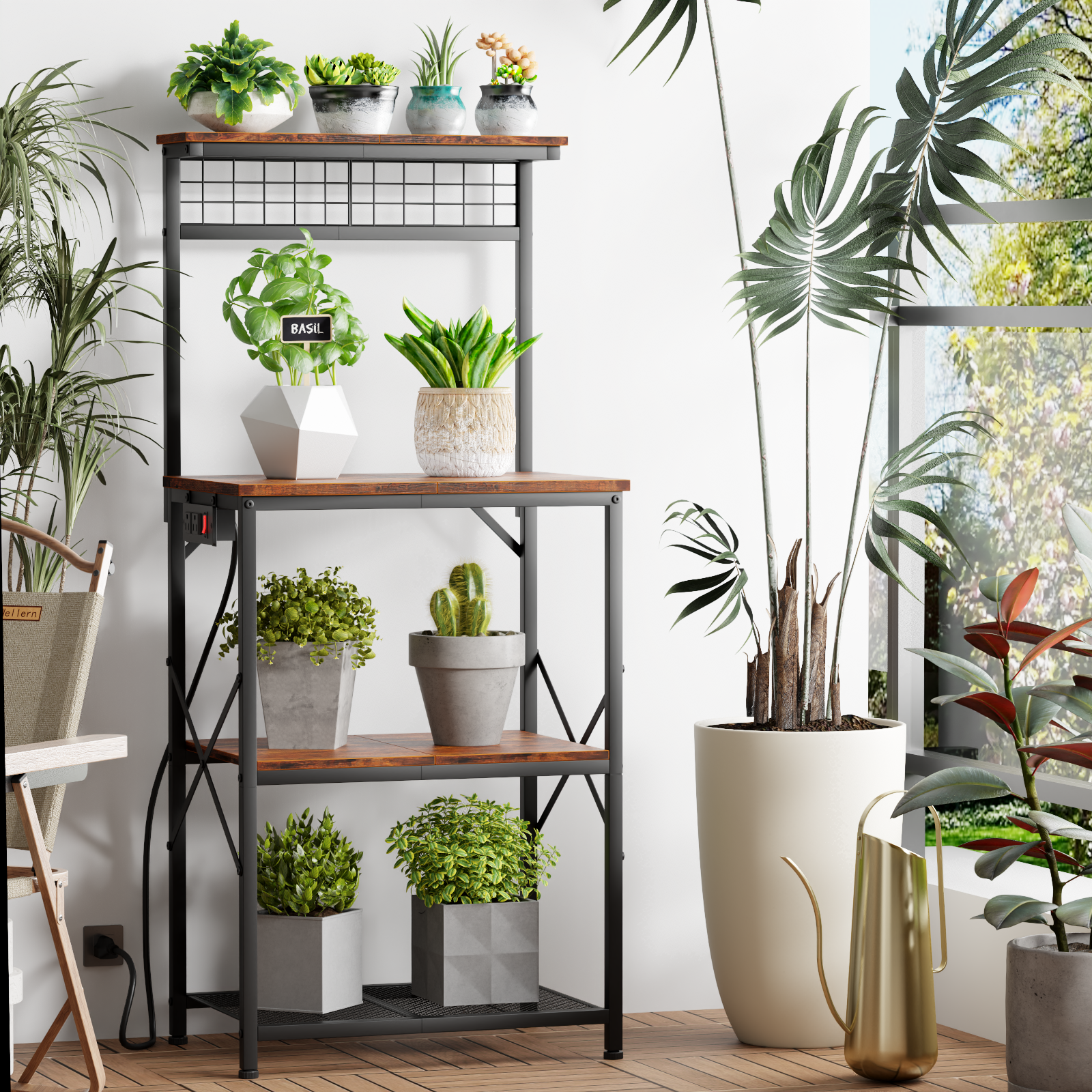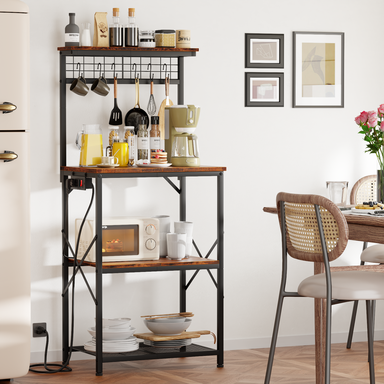 Baker's Rack with Power Outlets: Equipped with 2 power outlets and an air switch button, allowing you to charge your coffee maker, microwave oven, or other appliances directly on the rack without needing to move them.