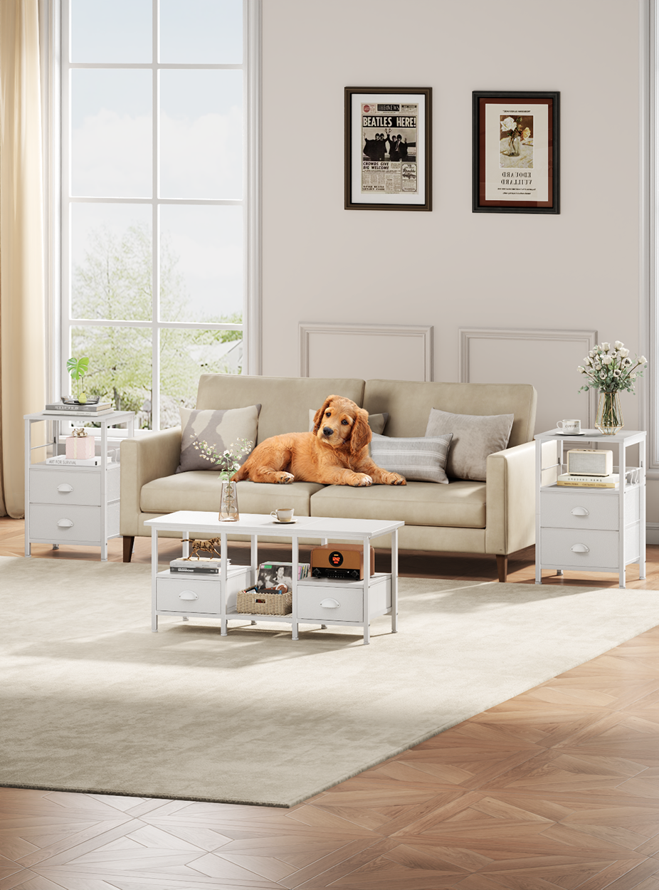 2 Fabric Drawers: The front of the drawer is made of PVC, while the rest are made of fabric, breathable and prevent dust, make table is lightweight. Sealed drawers for storing snacks, toys and other everyday items. It is ideal for storing personal items. Drawers bottom hold up to 7 lbs.
