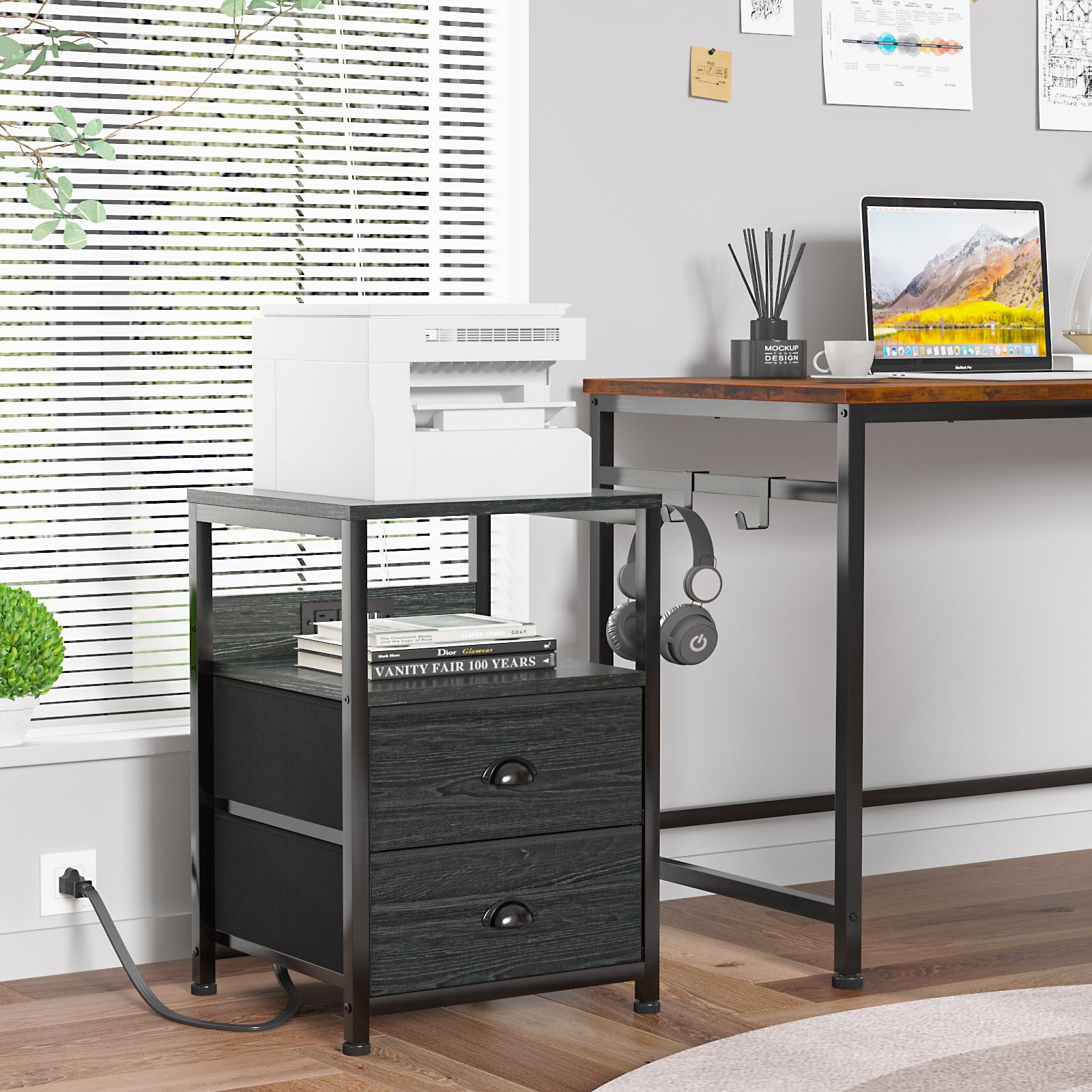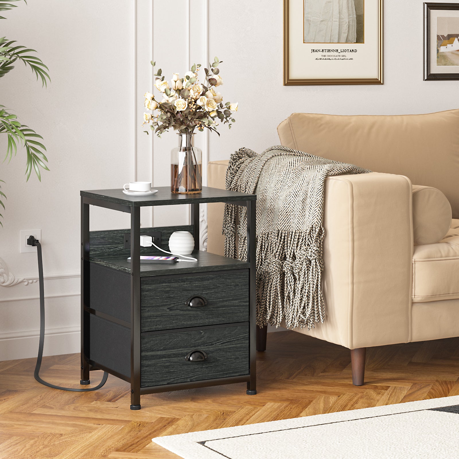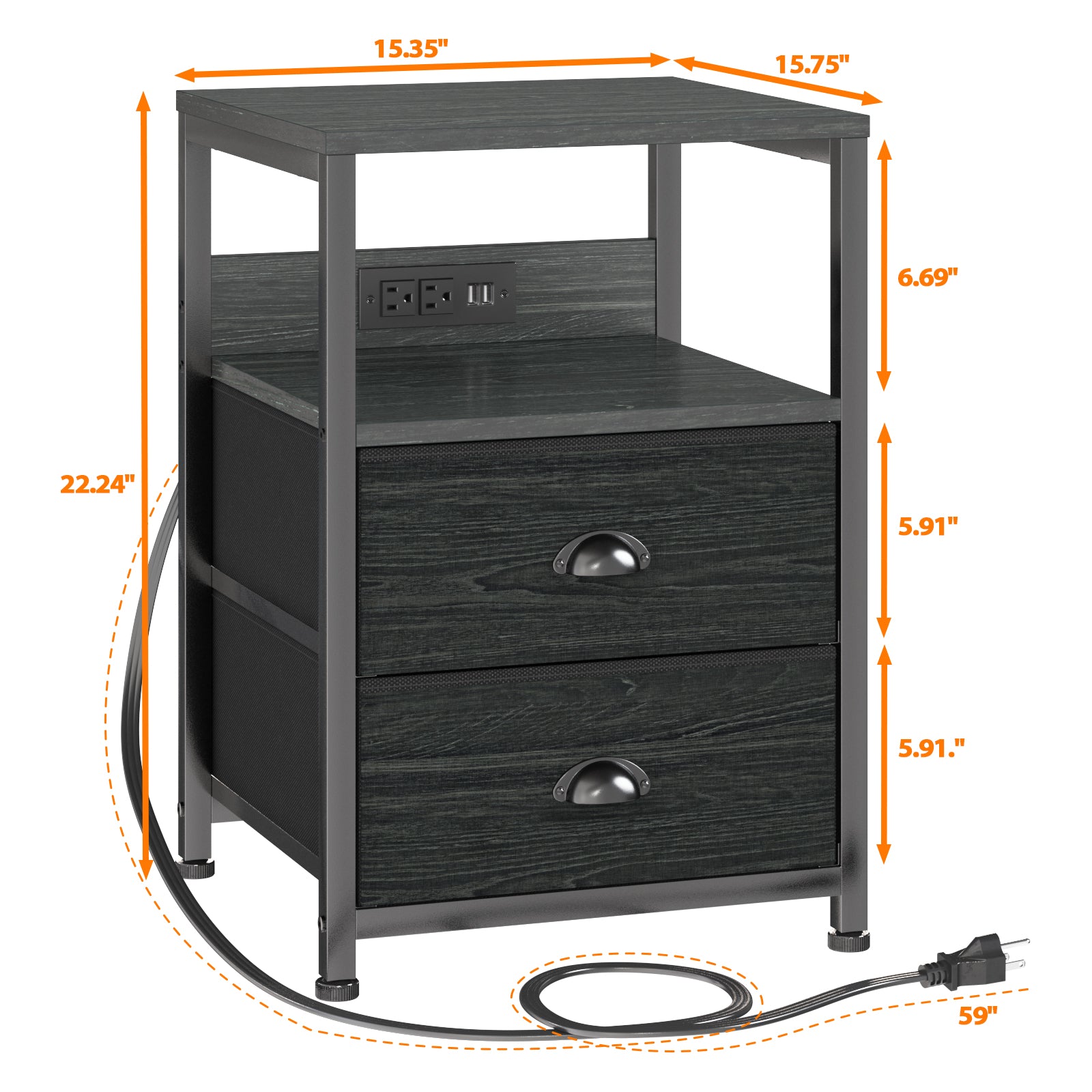 Nightstand with Charging Station: This black side table set of 2 comes with built-in 2 outlets and 2 USB ports, as well as a 4.9 foot power cord. Provide a convenient charging place for your mobile phone, Bluetooth earphones, watches, lamp and laptop, everything is within your arm's reach.