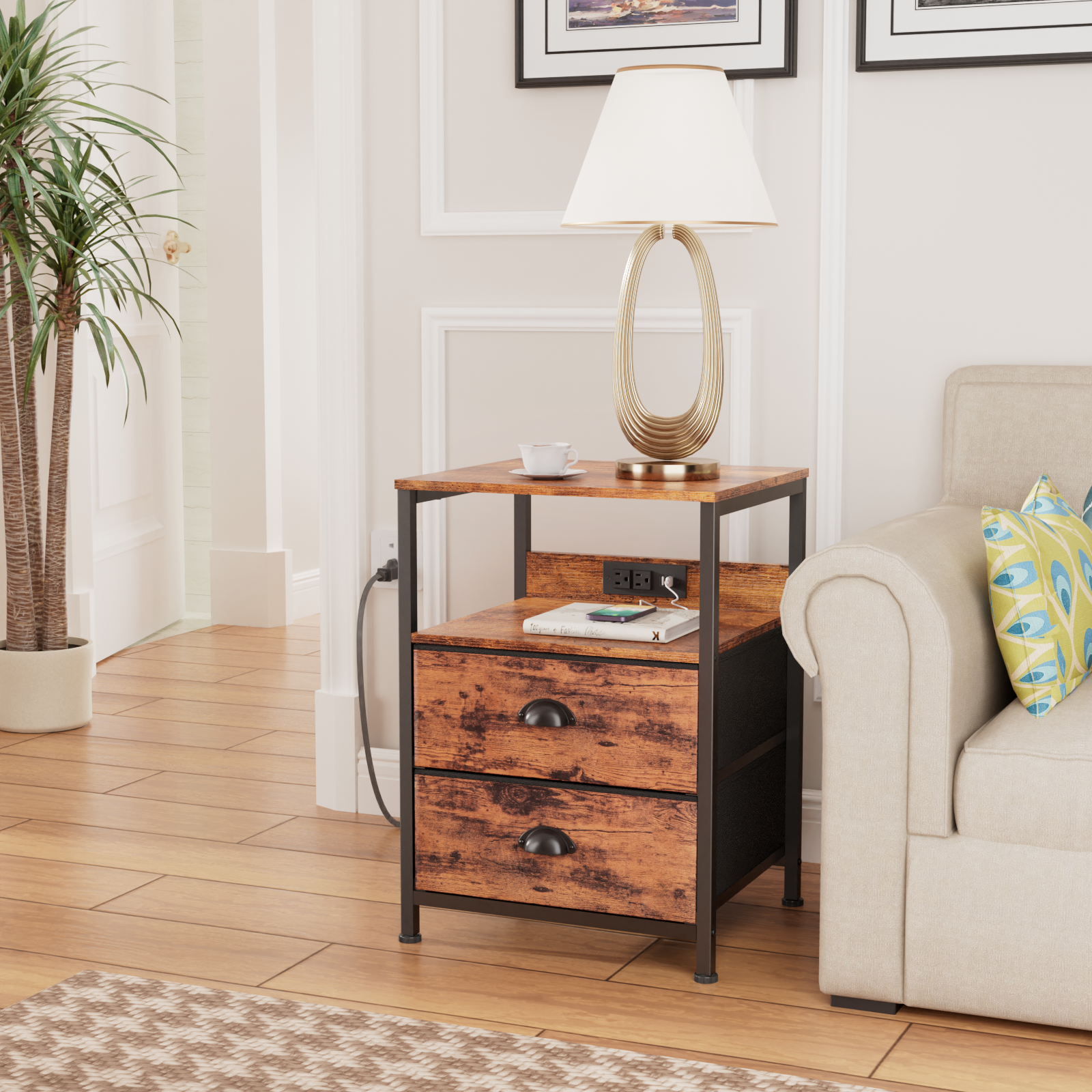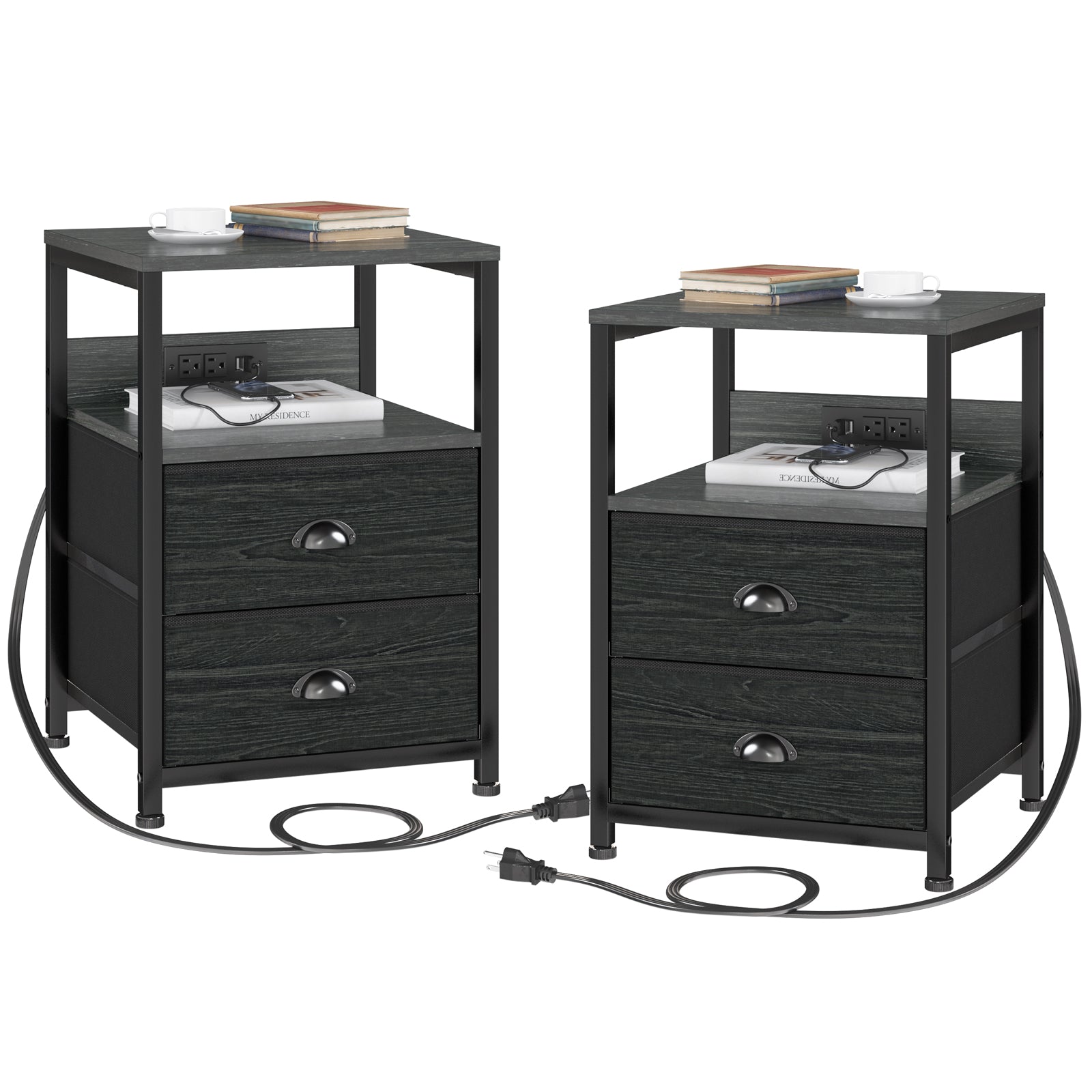 Furologee Set of 2 Nightstands, End Table with Charging Station